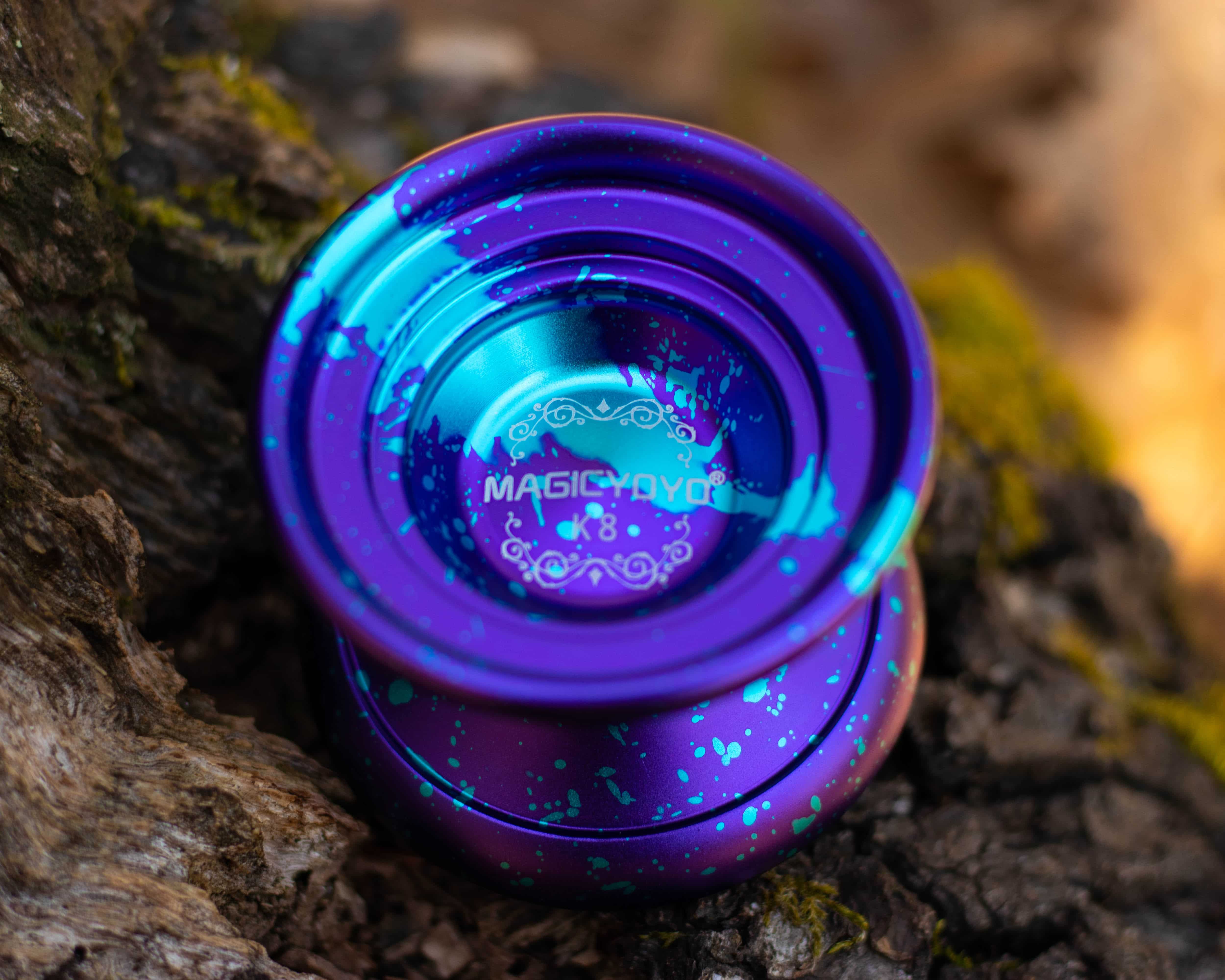 The Magic YoYo K8 is a full-sized, slightly inverse-round shaped, full aluminum yoyo with quite pronounced rims. The K8 is a beautiful yoyo with great splashed color providing a yoyo that people are going to notice!